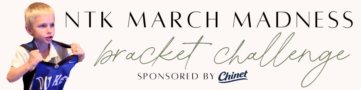 Be on the lookout Sunday evening for an email from us with a link to sign up for the annual NTK March Madness Bracket Challenge. Get excited because the prizes this year are even better!